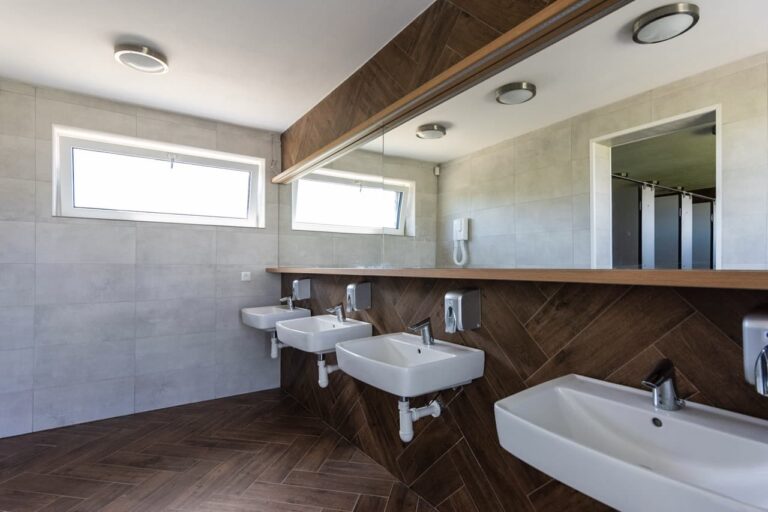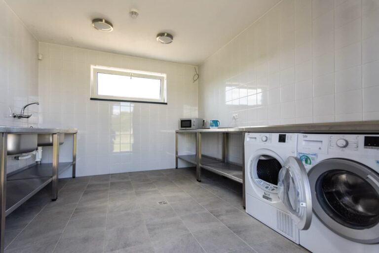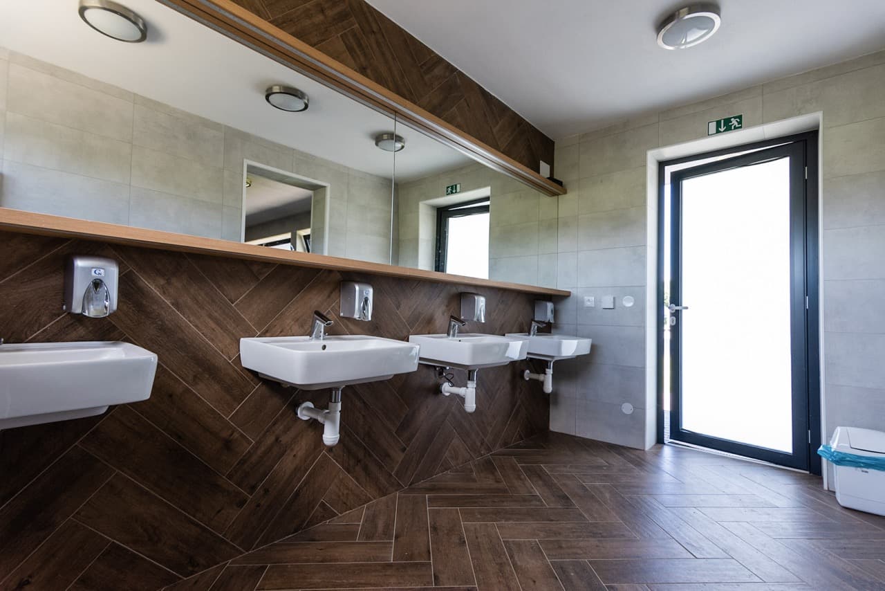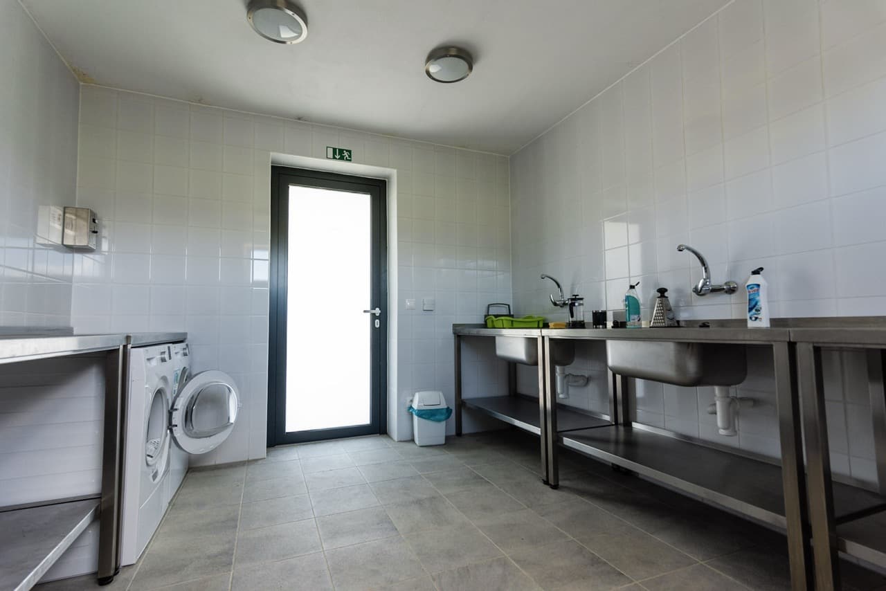- Moderná budova sociálnych zariadení vrátane zariadenej kuchyne a práčovne