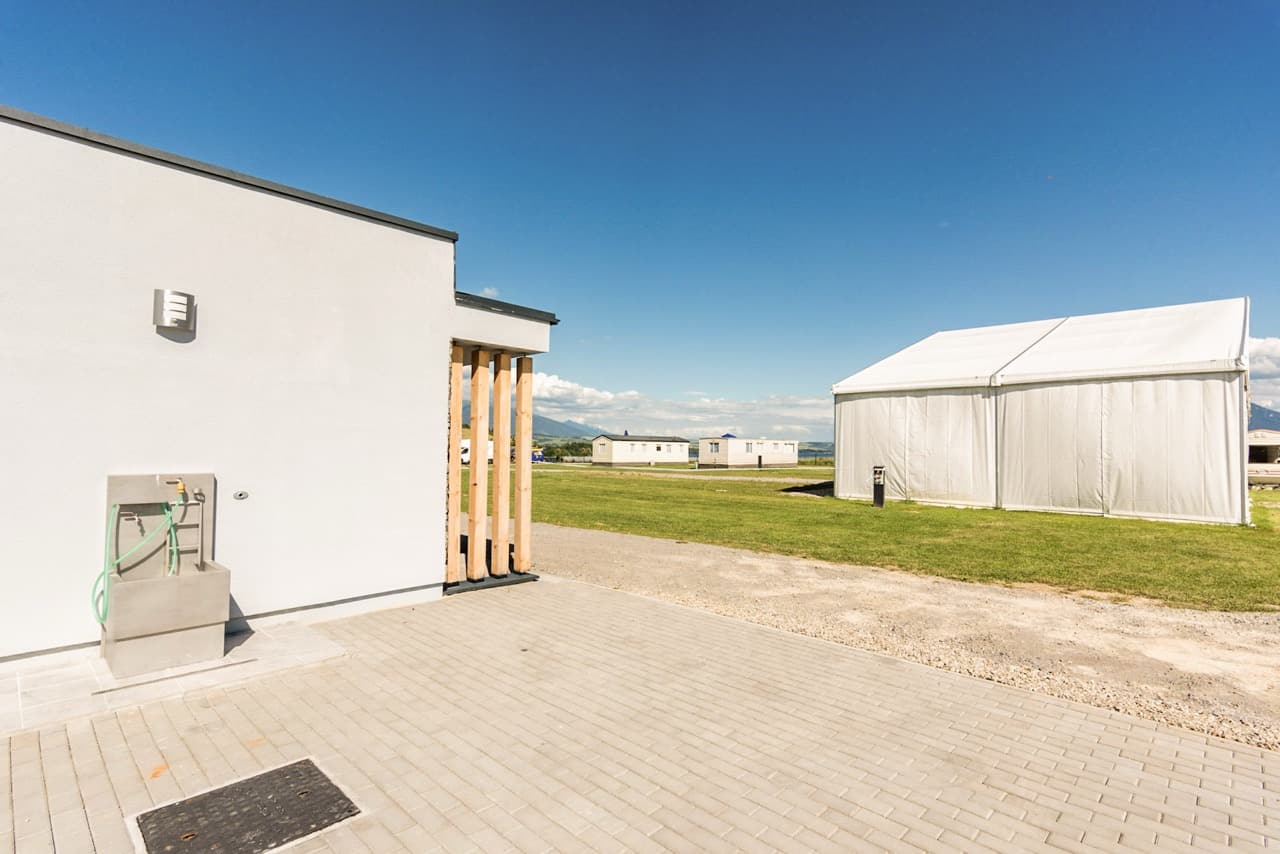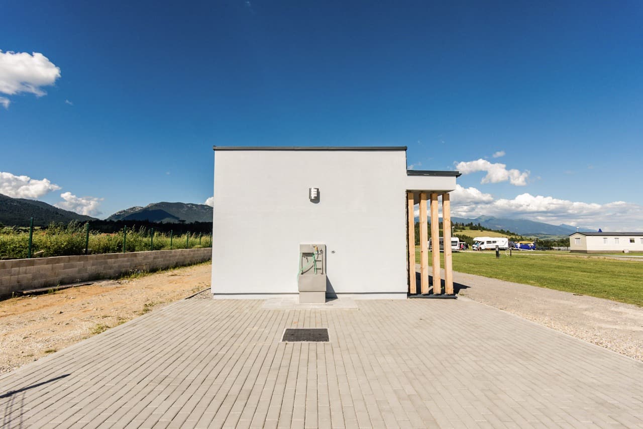 - Parkovacie miesta pre karavany majú k dispozícii elektrickú prípojku 220V a vodovodnú prípojku a odpad priamo na mieste.