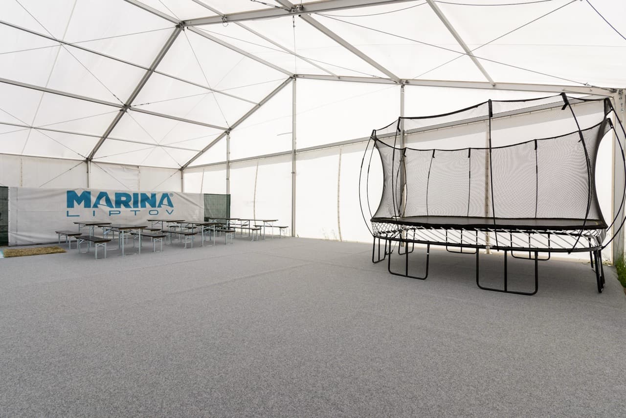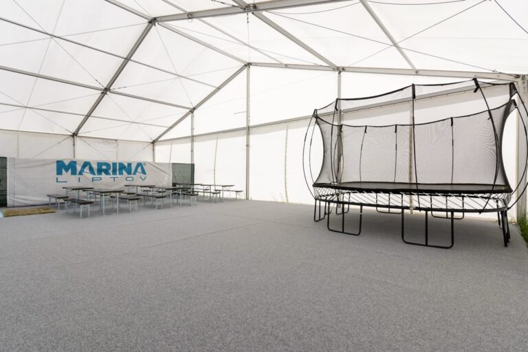 - V rámci areálu sa nachádza eventový stan so sedením – pivnými setmi.