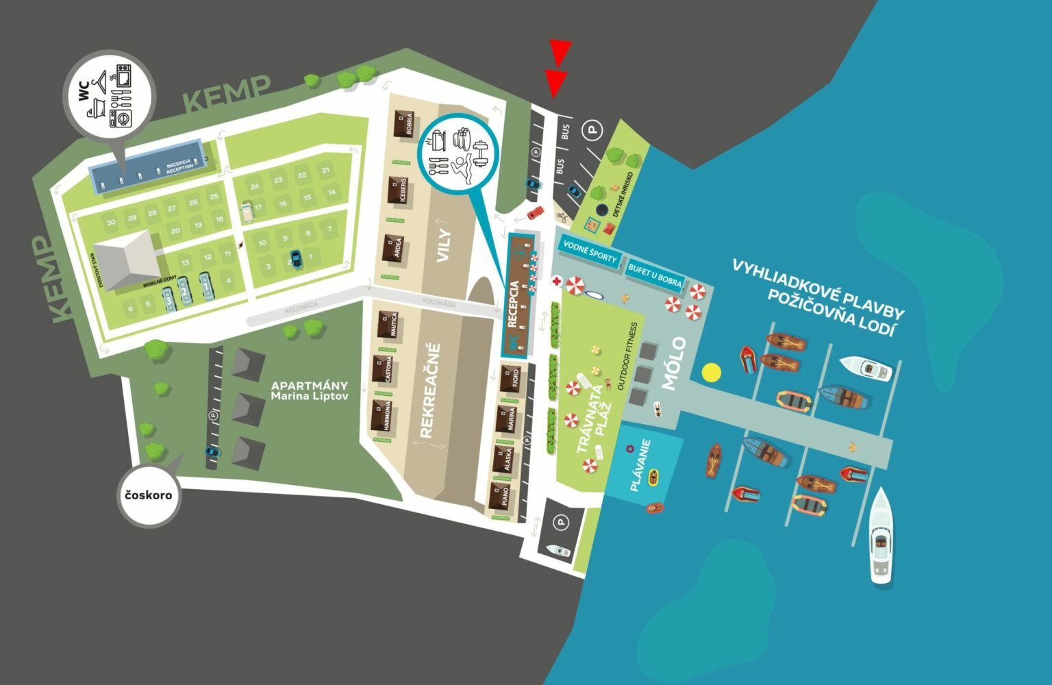 - Príchod ohlásite na recepcii v hlavnej budove Marina Liptov.