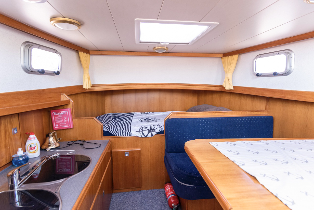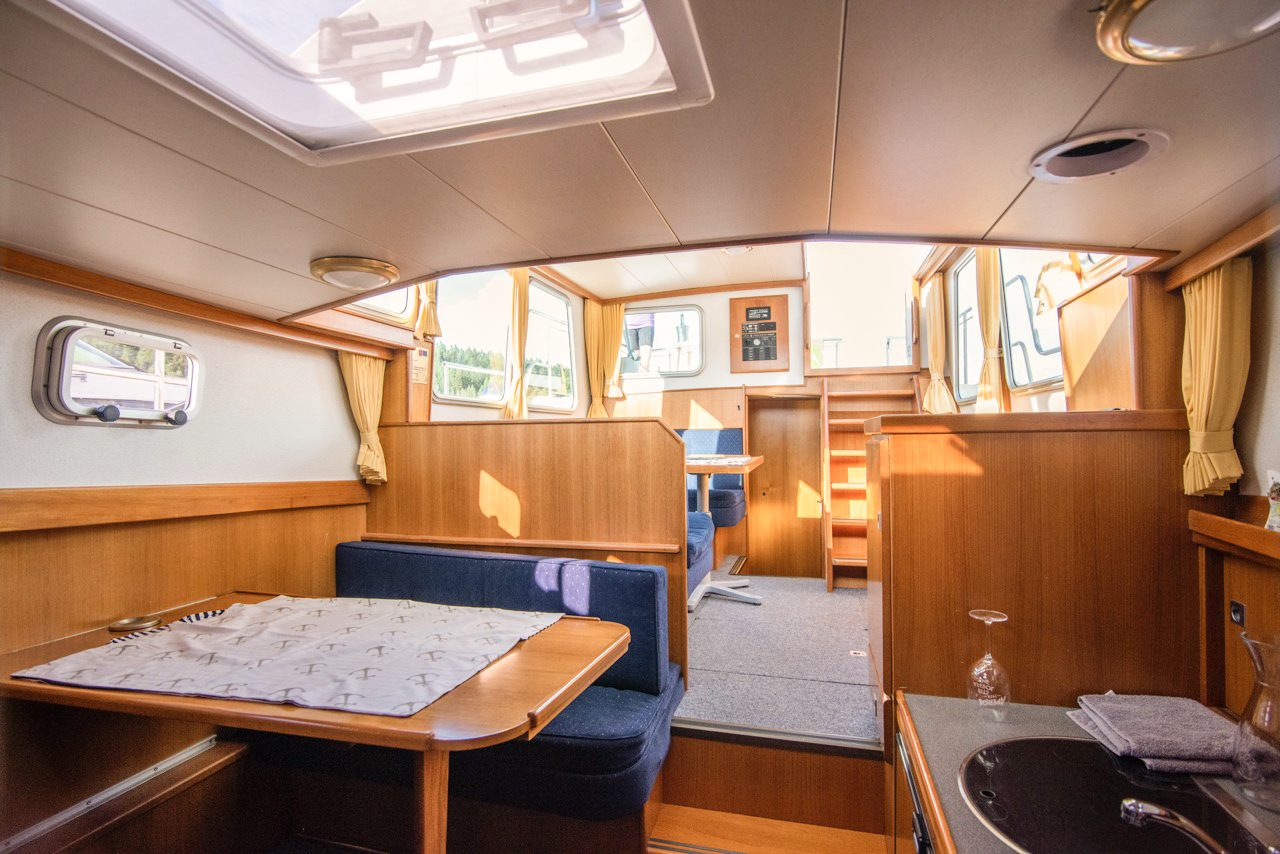 Pedro je plne vybavená loď na dlhší pobyt (pohodlne aj cez noc). Nájdete na nej kuchynku, pohodlnú spálňu s toaletou a ďaľšiu dvojposteľ. Vnútri sa nachádzajú aj 2 salóniky s komfortným sedením a tak sa dá plaviť aj v menej priaznivom počasí.